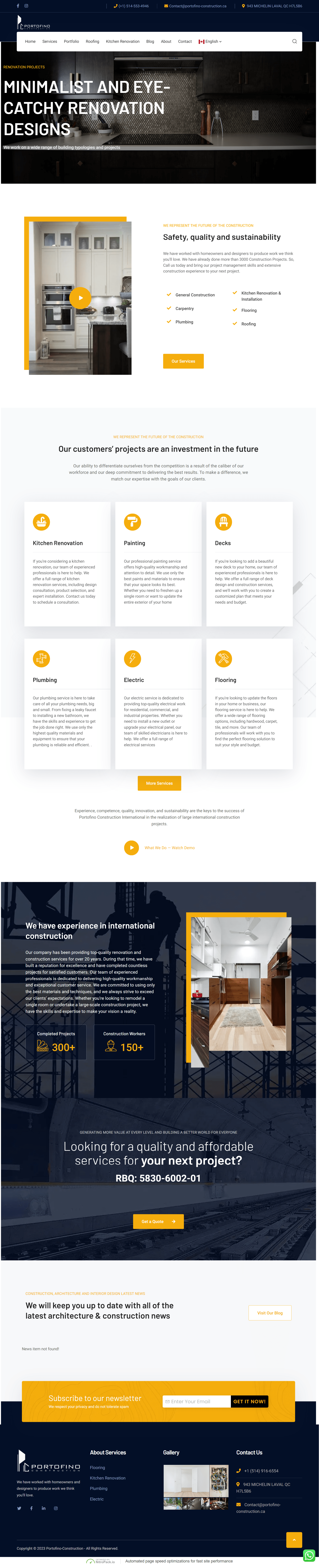 Portofino Construction & Renovation, located in Oshawa, Canada, excels in delivering high-quality construction and renovation services. Our website design showcases completed projects, emphasizing kitchen and basement renovations, stairs, painting, and flooring. Engaging visuals and a clear call-to-action prompt visitors to explore our services and request quotes. Service-specific pages provide in-depth insights and project portfolios, while the About Us section highlights our history and team expertise. The Portfolio features categorized projects with client testimonials, enhancing credibility. The Contact Us page, with a user-friendly form and clear contact details, facilitates seamless communication. Our responsive design and social media integration aim to provide an optimal user experience. Portofino strives to captivate, instill confidence, and connect with potential clients through a precise and engaging website.